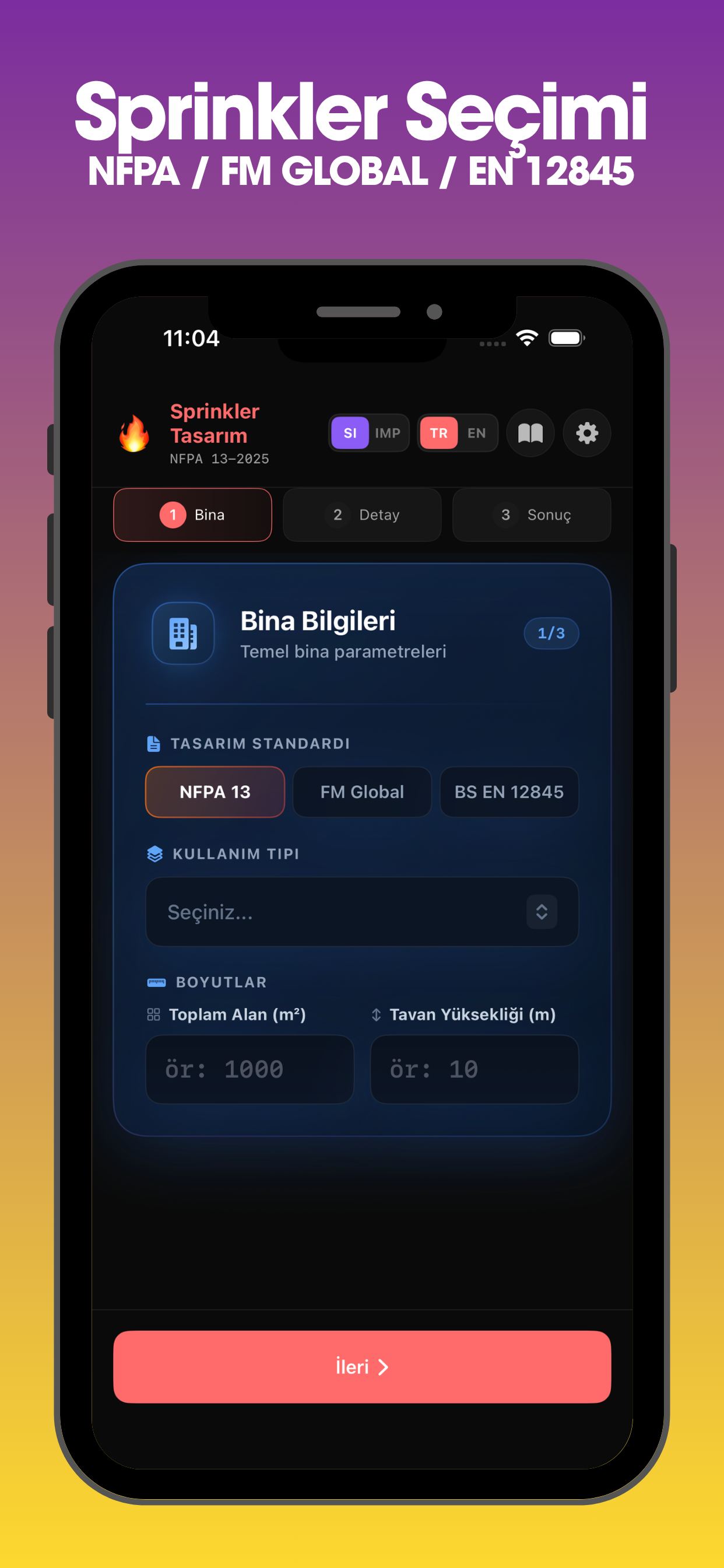 PDF output in NFPA 13 and BS EN 12845 format. Turkish and English language support.
